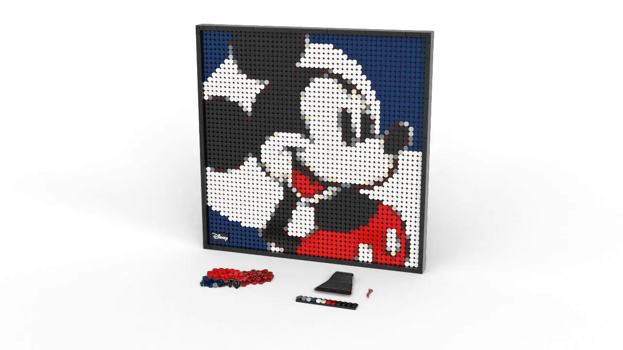 • Show off your love of Disney’s Mickey Mouse or Minnie Mouse with this stunning mosaic LEGO® Art ǀ Disney’s Mickey Mouse (31202) set. You can display the piece on your wall or shelf after creating it.